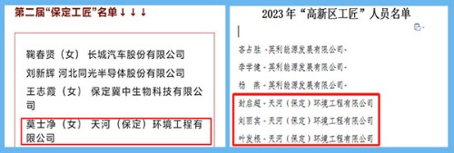 祝賀天河公司4名優(yōu)秀員工分別當(dāng)選保定工匠、高新區(qū)工匠